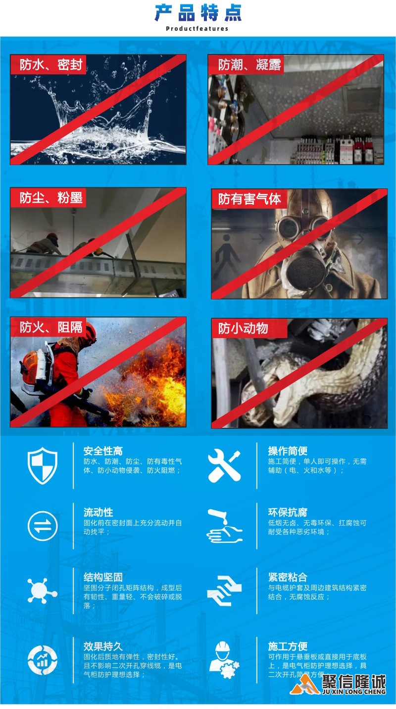 1.專門電力行業(yè)機柜除潮設(shè)計,A/B雙組料混合攪拌澆灌,充分考慮安全距離,適用于電氣機柜底部密封場合。